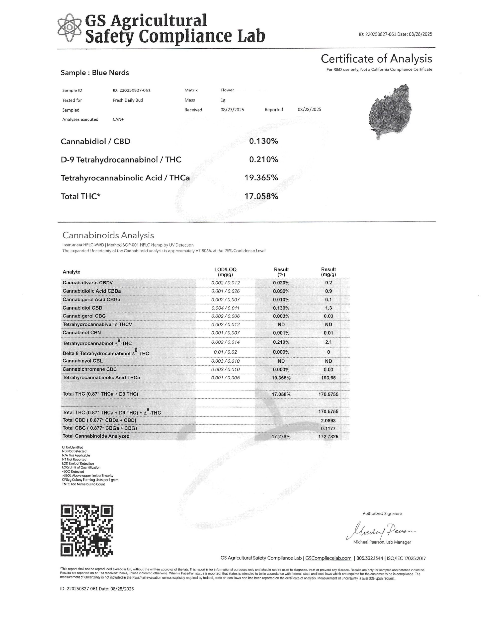 Blue Nerdz THCA Flower 8/27/2025