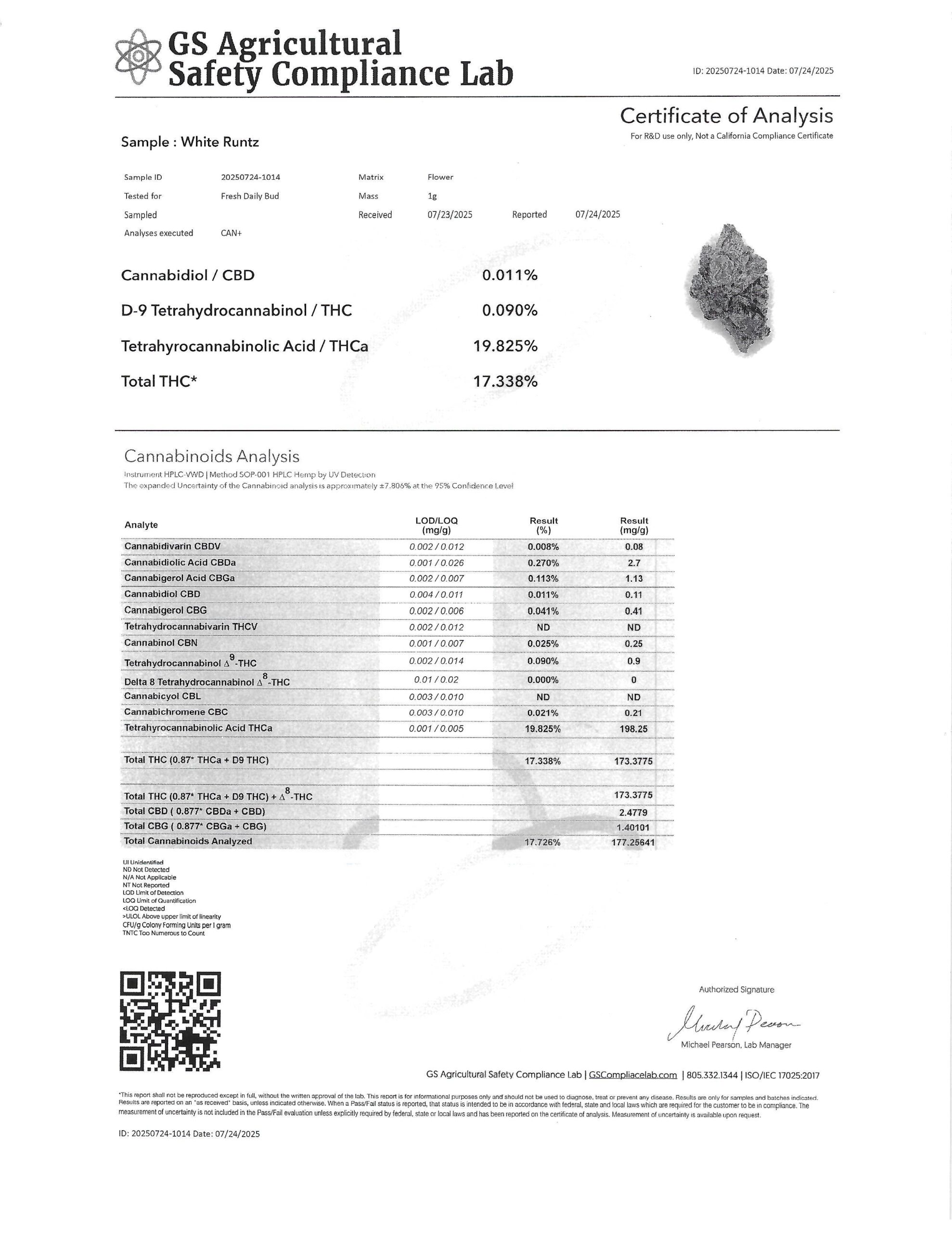 White Runtz THCA Flower 7/23/2025